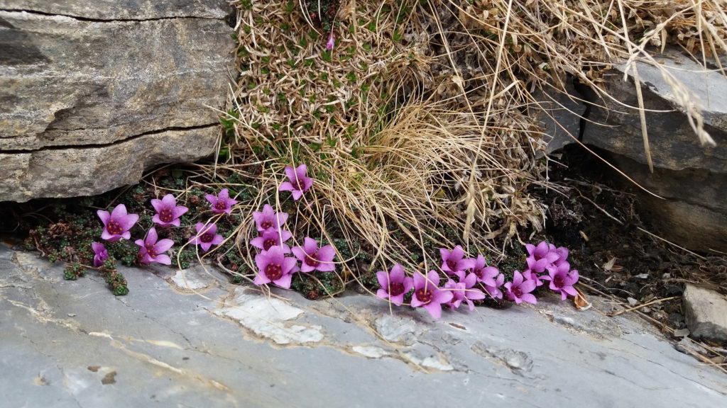 Oben angekommen, begrüssten uns schon die kleinen Blumen am Fels. Wunderschön.